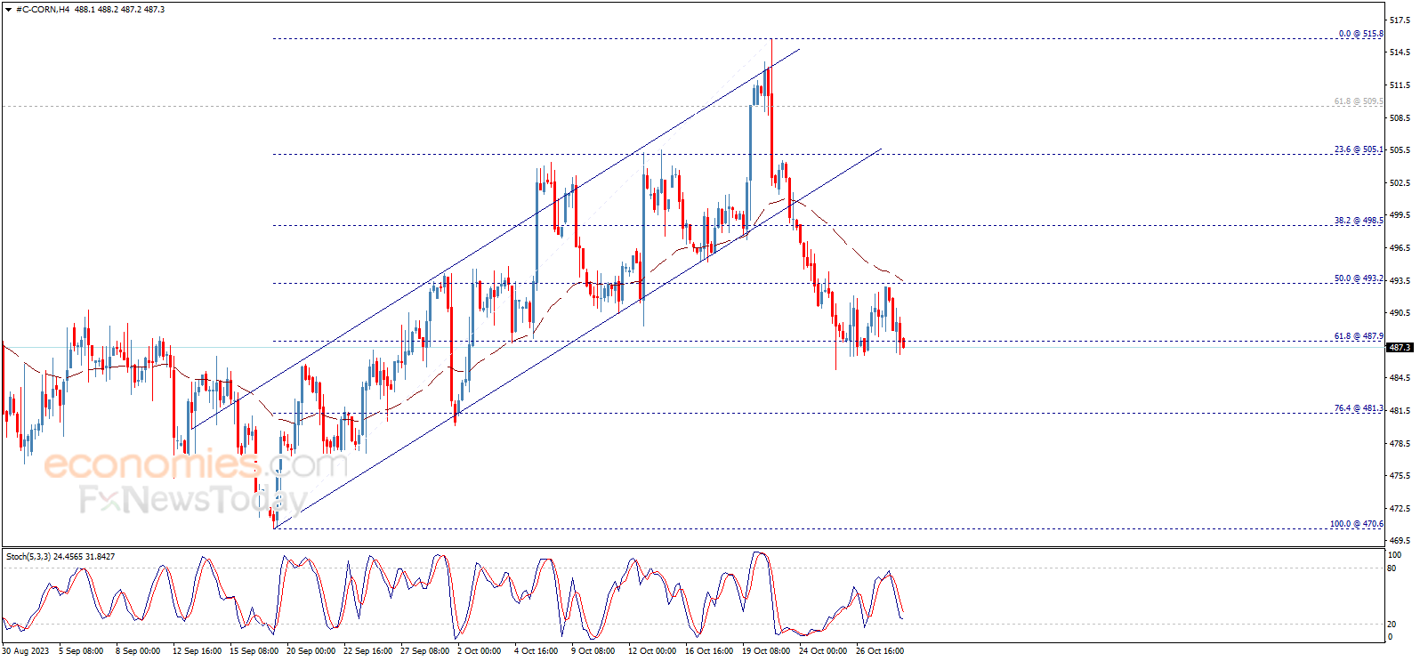 Corn price trades with clear negativity by today’s open to attack 487.90 level and attempts to hold below it, to start activating the negative scenario and pave the way to start new bearish wave that targets 481.30 areas mainly.