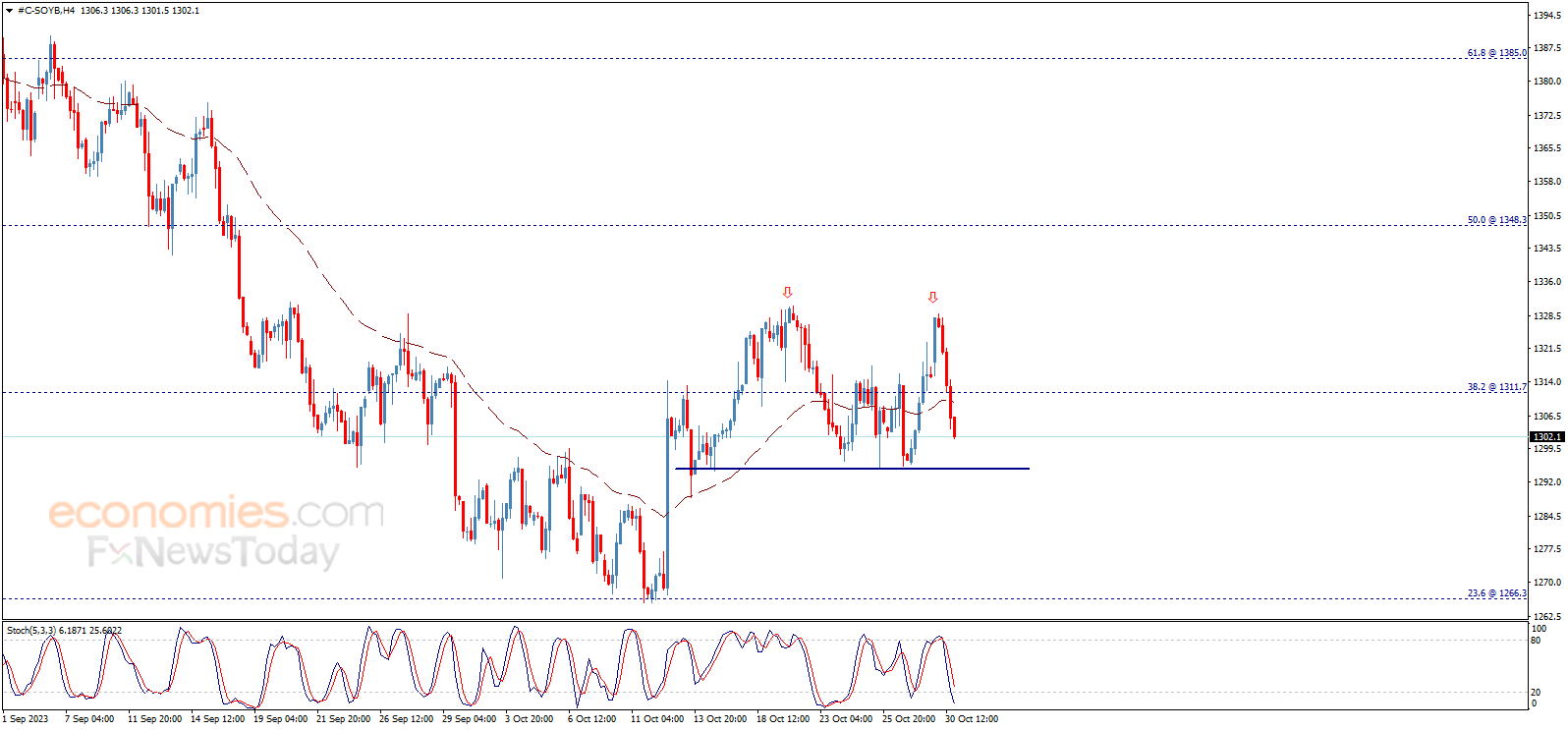 Soybean price bounced downwards strongly yesterday, starting today with more negativity to break 1311.70 and settles below it, and by taking a deeper look at the chart, we find that the price is forming double top pattern that its confirmation line located at 1295.00, which means that breaking this level will push the price to suffer more losses that reach 1266.30 areas.