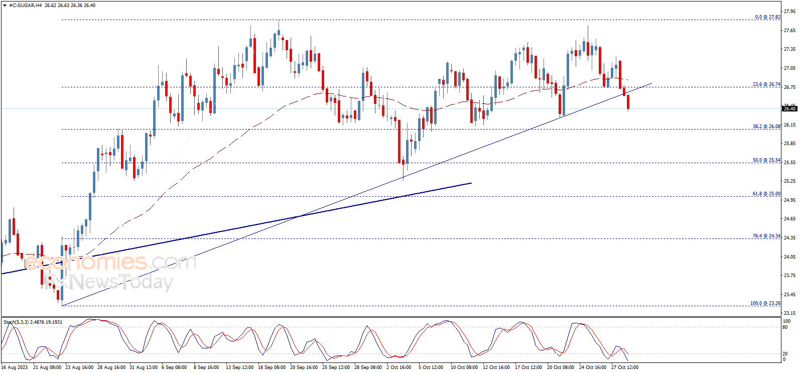 Sugar price ended yesterday with clear negativity, as it broke 26.74 and settled below it, to return to the correctional bearish track again, on its way to achieve negative targets that start at 26.08 and extend to 25.54 after breaking the previous level.