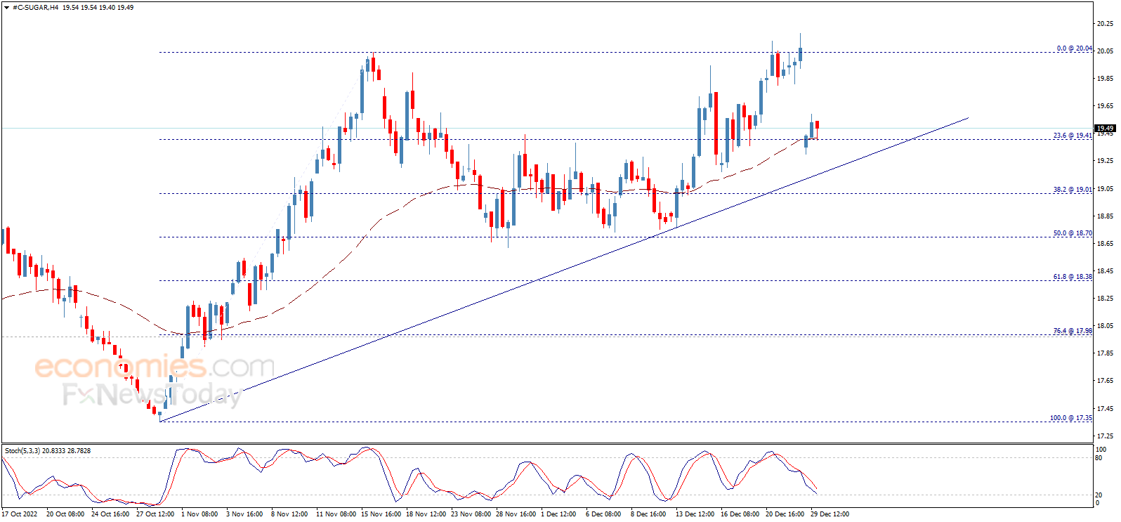 Sugar price showed strong bearish gap yesterday to test the key support 19.40, noticing that the price kept its consolidation above it, to keep the overall positive scenario active for the upcoming period, supported by stochastic and the EMA50 positivity, noting that our targets begin at 20.04 and extend to 20.50 after breaching the previous level.