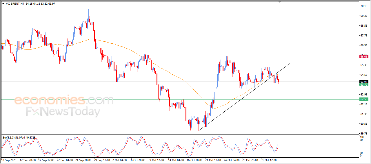 The (Brent) price declined in its last intraday trading, affected by the negative pressure that comes from its trading below EMA50, affected also by breaking bullish corrective trendline on the short-term basis, besides the emergence of negative crossover on the relative strength indicators, after offloading its oversold levels, intensifying the negative pressure.