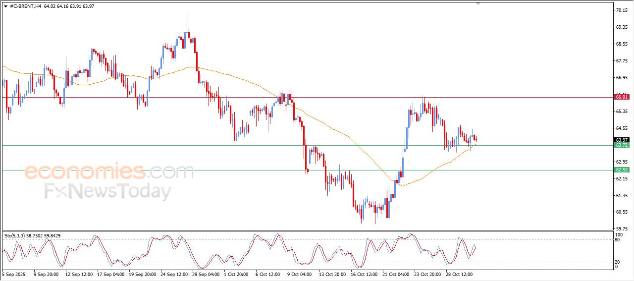 The (Brent) price decline in its last intraday trading, amid the continuous attempts to gain bullish momentum that might help it to recover and rise again, amid the dominance of bullish corrective wave on the short-term basis, and there is dynamic support due to its trading above EMA50, reinforcing the chances of he price rise in the upcoming period, if the price manages to keep the near support.