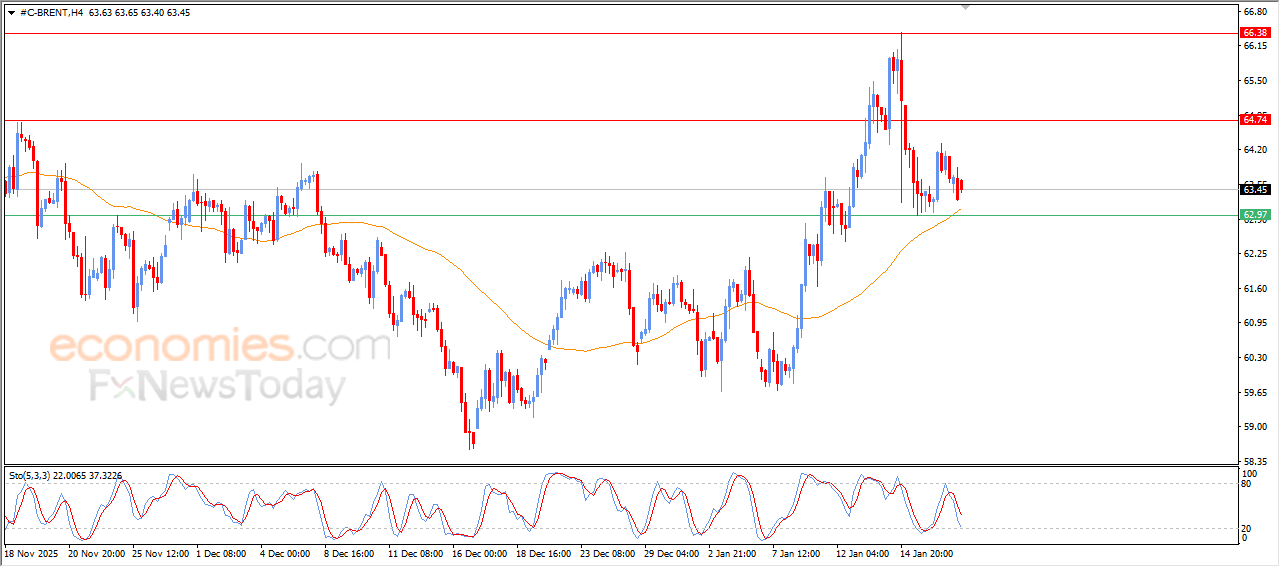 The (Brent) price declined slightly in its last intraday trading, with the emergence of negative signals from relative strength indicators, attempting to gain bullish momentum that might help it to recover and rise again, by looking for higher low to take it as a base to help it, amid the continuation of the dynamic support that is represented by its trading above EMA50, which reinforces the stability and dominance of the main bullish trend on short-term basis.