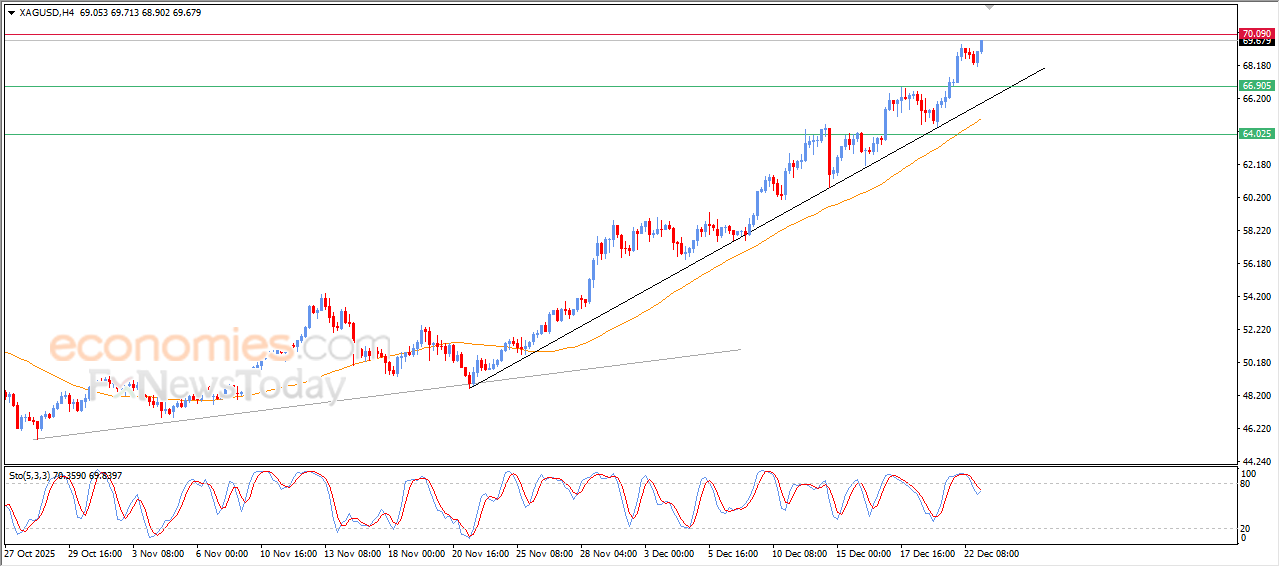Silver price soared during its last intraday trading, after offloading its overbought conditions on the relative strength indicators, especially with the emergence of positive overlapping signals, opening the way for achieving more of the gains on the near-term basis, amid the dominance of the main bullish trend on the short-term basis and its trading alongside supportive minor trend line for this trend, besides the continuation of the positive pressure due to its trading above EMA50, to reinforce extending the gains in the upcoming period.