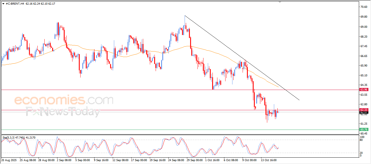 The (Brent) price fluctuated in its last intraday levels, attempting to recover some of its previous losses, amid the continuation of the negative pressure due to its trading below EMA50, reinforcing the dominance of the main bearish track on the short-term basis and its trading alongside trendline that represents dynamic resistance that prevent the recovery on a near-term basis, on the other hand, we notice the emergence of positive crossover on the relative strength indicators, which makes us witness some temporary corrective rebounds.