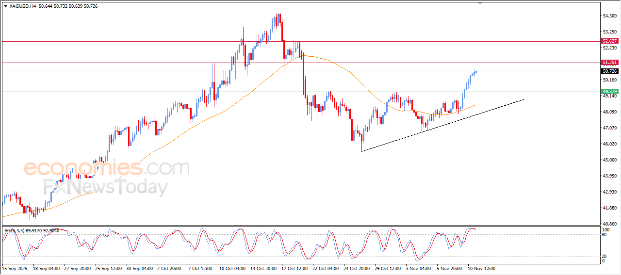 Silver price kept rising in its last trading on the intraday levels, amid the dominance of the main bullish trend and its trading alongside minor trend line on the short-term basis that supports this track, taking advantage of the dynamic pressure that is represented by its trading above EMA50, to reinforce extending the gains in the upcoming period, on the other hand, we notice the emergence of negative overlapping signals on the relative strength indicators, after reaching overbought levels that might reduce its upcoming gains.