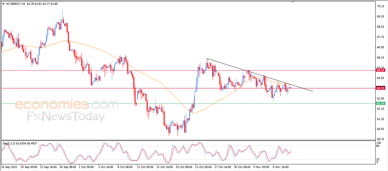 The (Brent) price settled with slight gains in its last intraday trading, amid its trading in limited range of sideways trading, affected by the emergence of the positive signals on the relative strength indicators, facing negative pressure that comes from its trading below EMA50, with its trading alongside minor bearish trendline on the short-term basis, intensifying the negative pressure around the price.
