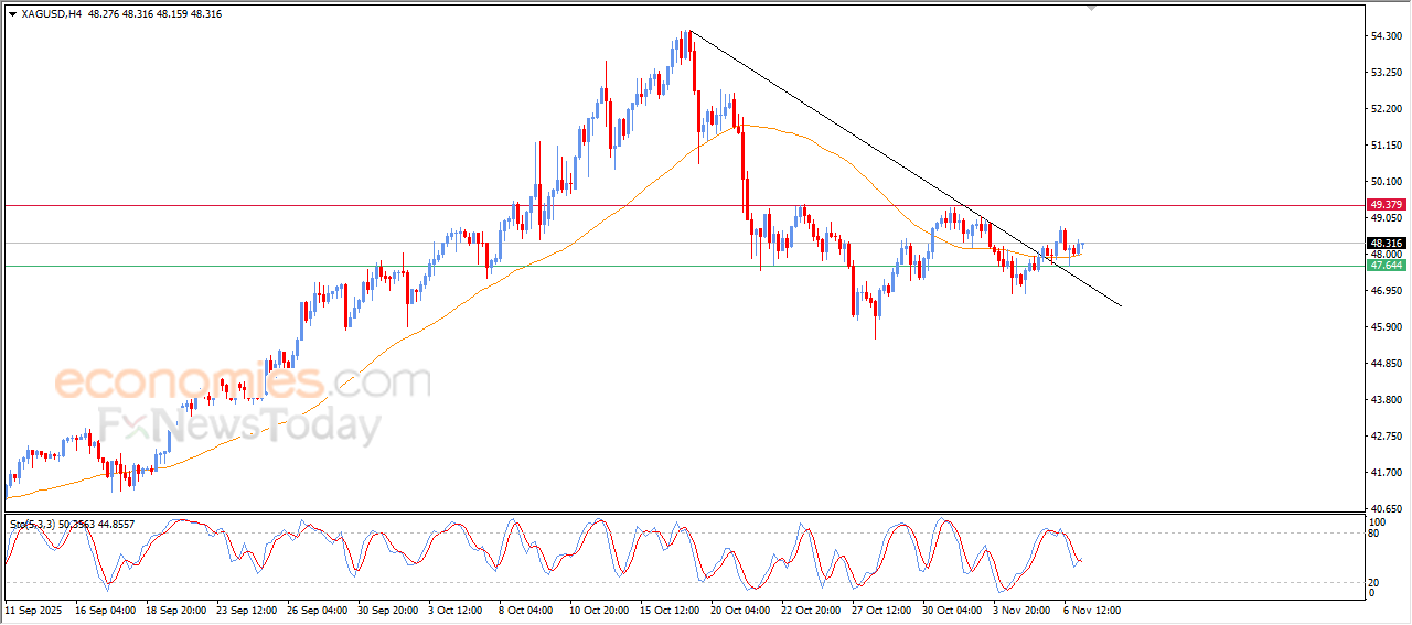 Silver price rose in its last trading on the intraday levels, affected by leaning on the support of its EMA50, gaining some bullish momentum that helped it to achieve these gains, especially with the emergence of positive crossovers on the relative strength indicators, after offloading its overbought conditions, opening the way for achieving more of the gains on the near-term basis, affected by breaching bearish corrective trendline on the short-term basis.