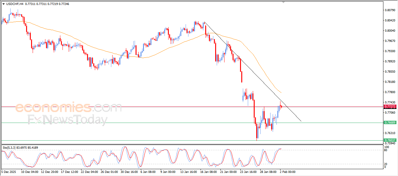 The (USDCHF) price settles on gains in its last intraday trading, to test 0.7725 key resistance, accompanied by testing minor bearish trend line on short-term basis, amid the continuation of the negative pressure due to its trading below EMA50, which reduces the chances of full recovery on near-term basis, with the emergence of negative overlapping signals from relative strength indicators, after reaching overbought levels.