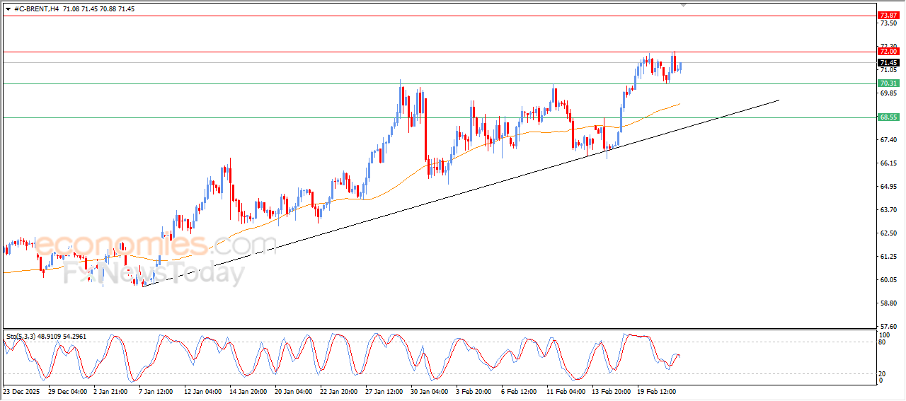The (Brent) price rose in its last intraday trading, preparing to attack $72.00 resistance, supported by its continuous trading above EMA50, with the dominance of the main bullish trend on short-term basis, and its trading alongside supportive trend line for this bullish track on the other hand, we notice the emergence of negative overlapping signals from relative strength indicators, after offloading its oversold conditions, which might reduce the gains on near-term basis.
