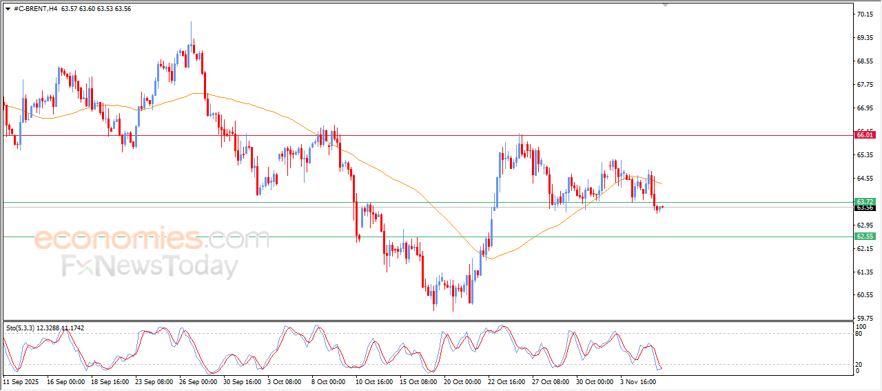 The (Brent) price settled in its last trading on the intraday levels, amid the continuation of the negative pressure that comes from its trading below EMA50, reinforcing the stability of the main bearish trend on the short-term basis, to confirm breaking the key support level at $63.75, on the other hand, we notice the emergence of positive crossover on the relative strength indicators, after reaching oversold levels, which helped it settle temporarily due to its neediness to offload some of its oversold conditions.