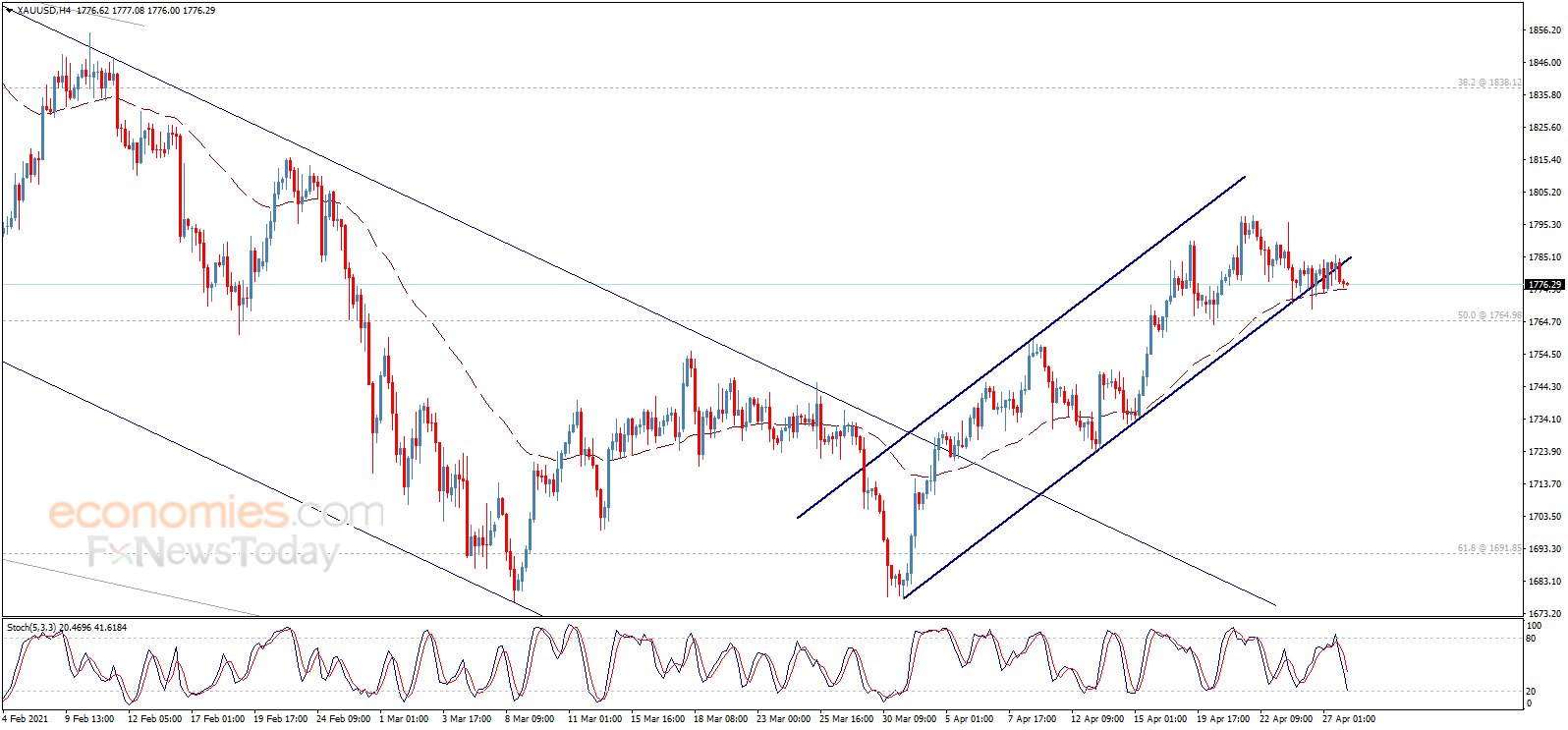 Gold price trades negatively to break the bullish channel’s support line and settles below it, which urges caution from the upcoming trading, as the price needs to step above 1785.00 to confirm the continuation of the recently suggested bullish trend, which targets 1800.00 followed by 1838.00 as next main stations.