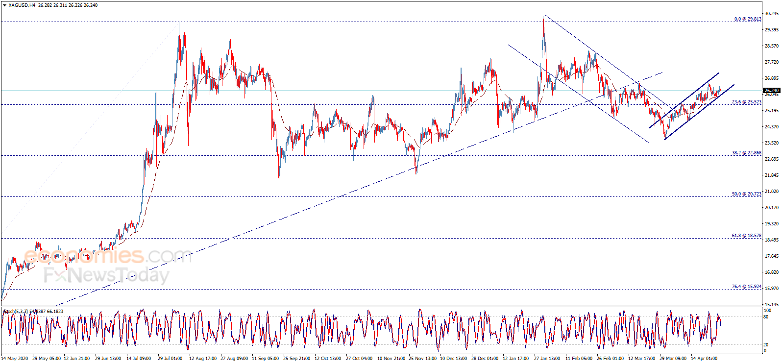 Silver price keeps its stability inside the intraday bullish channel, getting continuous positive support by the EMA50, waiting to get positive momentum that assists to push the price to head towards our main expected target at 27.00.