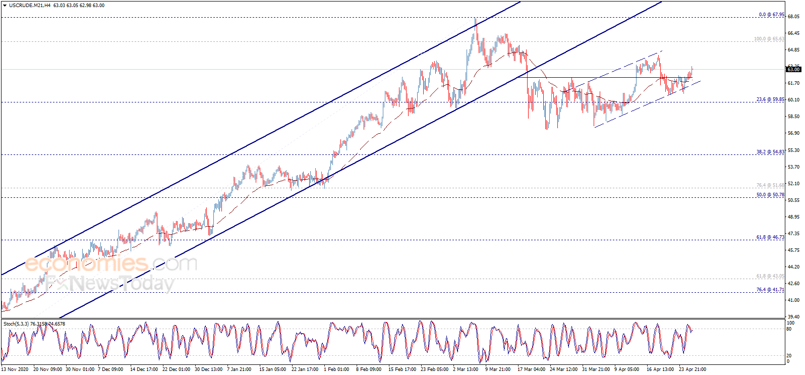 Crude oil price confirmed breaching 62.20 level after closing the daily candlestick above it, to confirm heading towards achieving expected gains in the upcoming sessions, paving the way to head towards 65.60 that represents the next positive target.