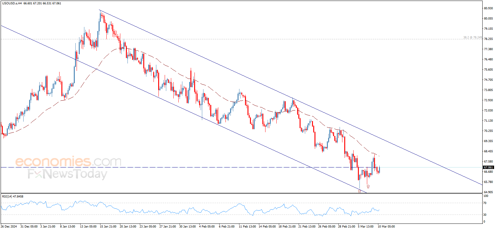 Crude oil price trades with clear positivity to attack 67.05$ and attempts to breach it, which urges caution form the upcoming trading, as confirming the breach will stop the morning suggested negative scenario and push the price to build bullish wave that targets testing 69.50$ areas mainly.