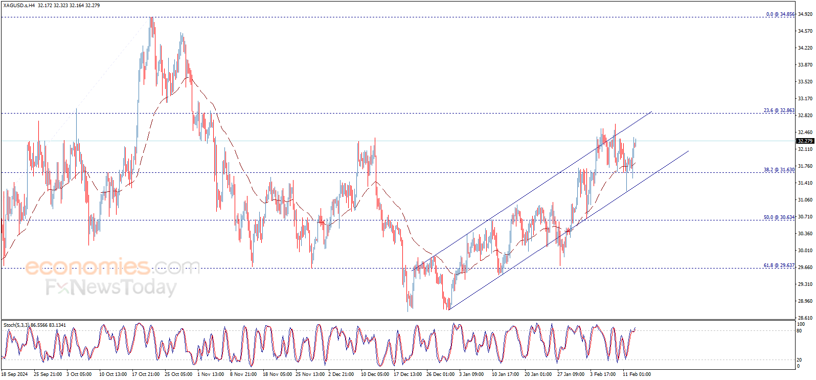Silver price bounced upwards clearly after testing 31.63$ level in the previous sessions, to head towards testing the intraday bullish channel’s resistance line that appears on the chart and continue moving within the bullish track on the intraday and short-term basis.