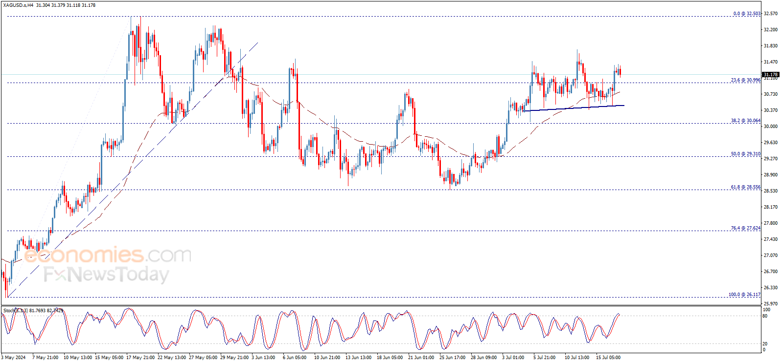 Stochastic negativity might cause some temporary sideways fluctuation, waiting to gather positive momentum that assist to push the price to achieve the suggested targets, noting that breaking 31.00$ followed by 30.50$ levels will stop the positive scenario and put the price under the correctional bearish pressure again.