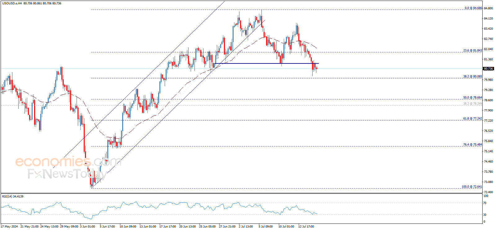 Crude oil price settles around 80.75$ after the clear decline that it witnessed in the previous sessions, and by taking a deeper look at the chart, we find that the price completed forming double top pattern that has negative targets that surpass 80.08$ to reach 78.66$ followed by 77.25$ on the near-term basis.