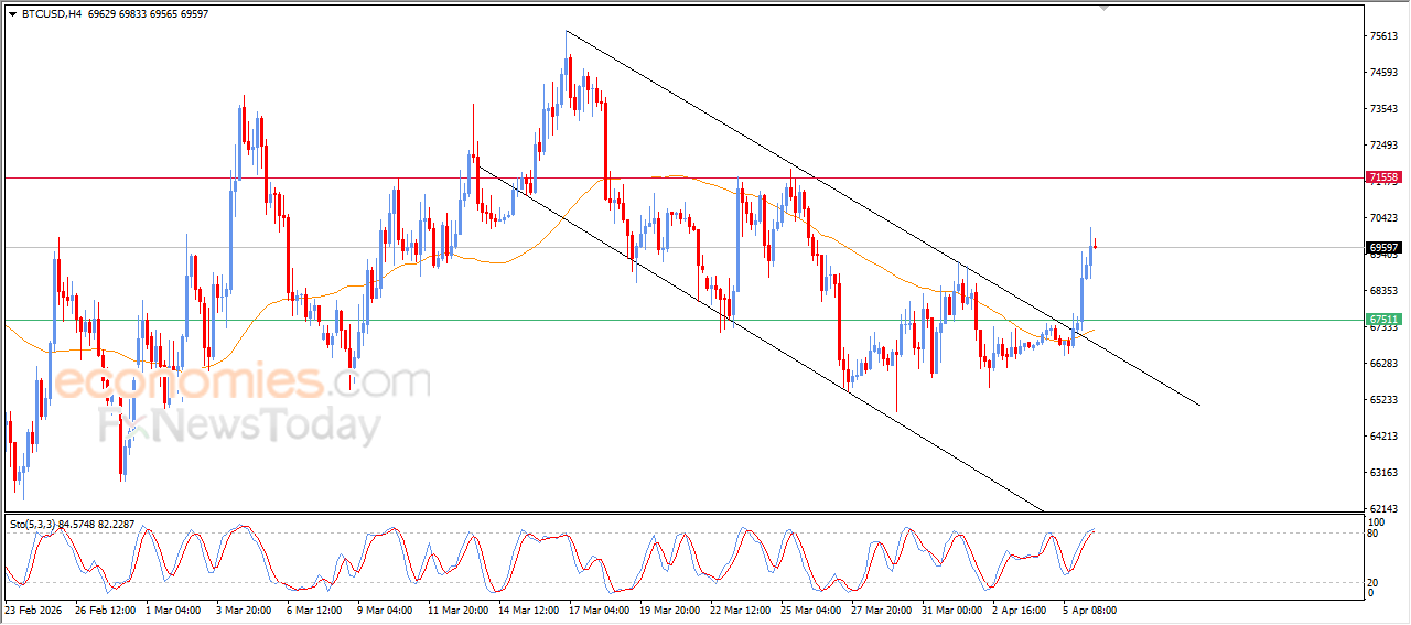 Bitcoin (BTCUSD) extended its gains in recent intraday trading, affected by exiting bearish corrective channel’s range that limited its previous trading on short-term basis, taking advantage of the dynamic support that is represented by its trading above EMA50, reinforcing the bullish scenario in the near upcoming period, especially with the emergence of positive signals from the relative strength indicators, despite reaching overbought levels.