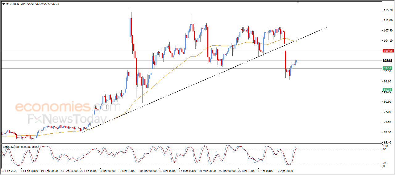 Crude oil prices extended their early gains during recent intraday trading, to retest the key resistance at $94.70, amid the dominance of bearish corrective wave, affected by breaking main bullish trend on the short-term basis, with a negative and dynamic pressure that is represented by its trading below EMA50, reducing the chances of full recovery on the near-term basis, especially with the relative strength indicators reaching overbought levels, exaggeratedly compared to the price move, with the emergence of negative overlapping signals, to indicate forming negative divergence that intensifies the negative pressure on the price.