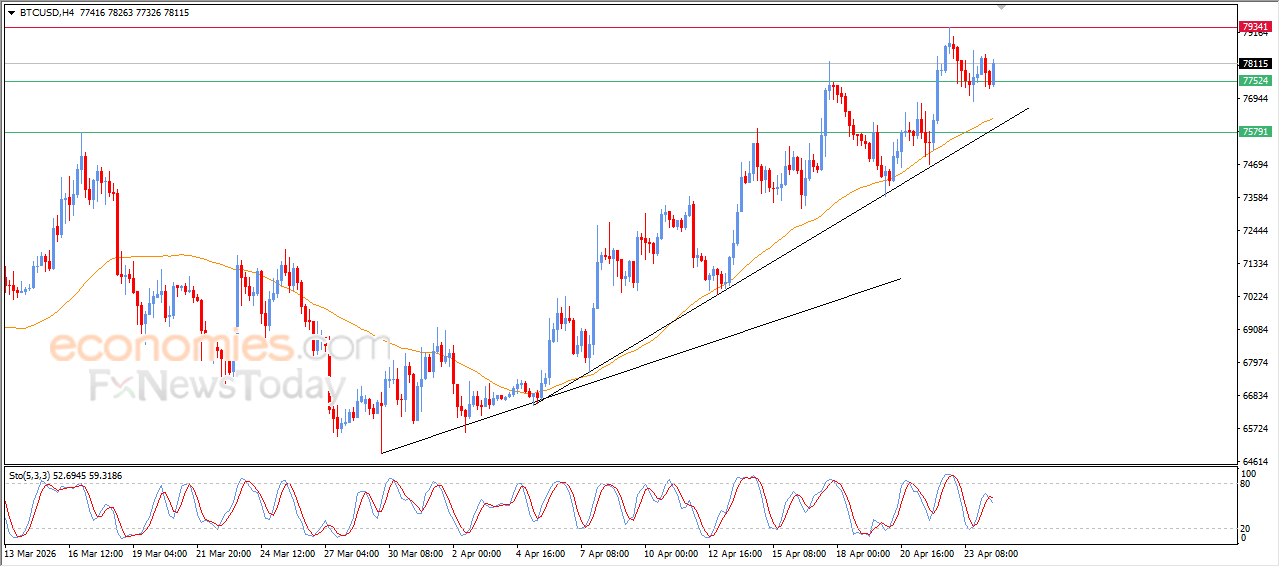 Bitcoin (BTCUSD) price rose in its recent intraday trading, with the continuation of the dynamic support that is represented by its trading above EMA50, reinforcing the stability and dominance of the main bullish trend on short-term basis, with its trading alongside main and minor trend lines that support this path, on the other hand we notice the emergence of negative overlapping signals on the relative strength indicators, which might limit the gains temporarily in the upcoming near period.