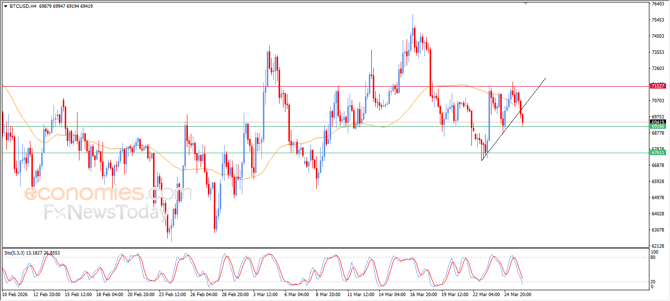 Bitcoin price (BTCUSD) continued to decline during its recent intraday trading, pressured by ongoing negative signals from the relative strength indicators. The price has also broken below EMA50, exposing it to further downside pressure, especially as this move coincided with a break of a short-term ascending trendline, increasing the likelihood of deeper losses in the near term.