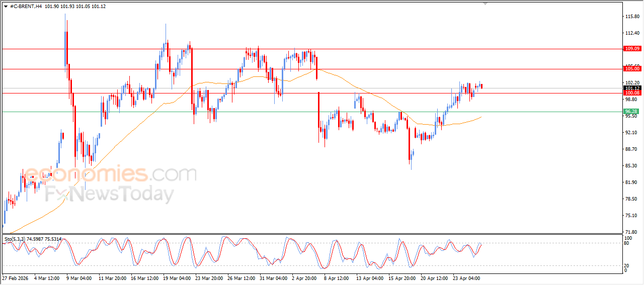 Brent crude oil declined in its recent intraday trading, in a quick attempt to gain bullish momentum that might help it to recover and rise again, attempting to offload some of its overbought conditions on the relative strength indicators, with the emergence of negative overlapping signals, opening the way for targeting new resistance levels in the upcoming near period, with the continuation of its trading above EMA50, providing dynamic support that reinforces the dominance of the bullish trend on short-term basis.