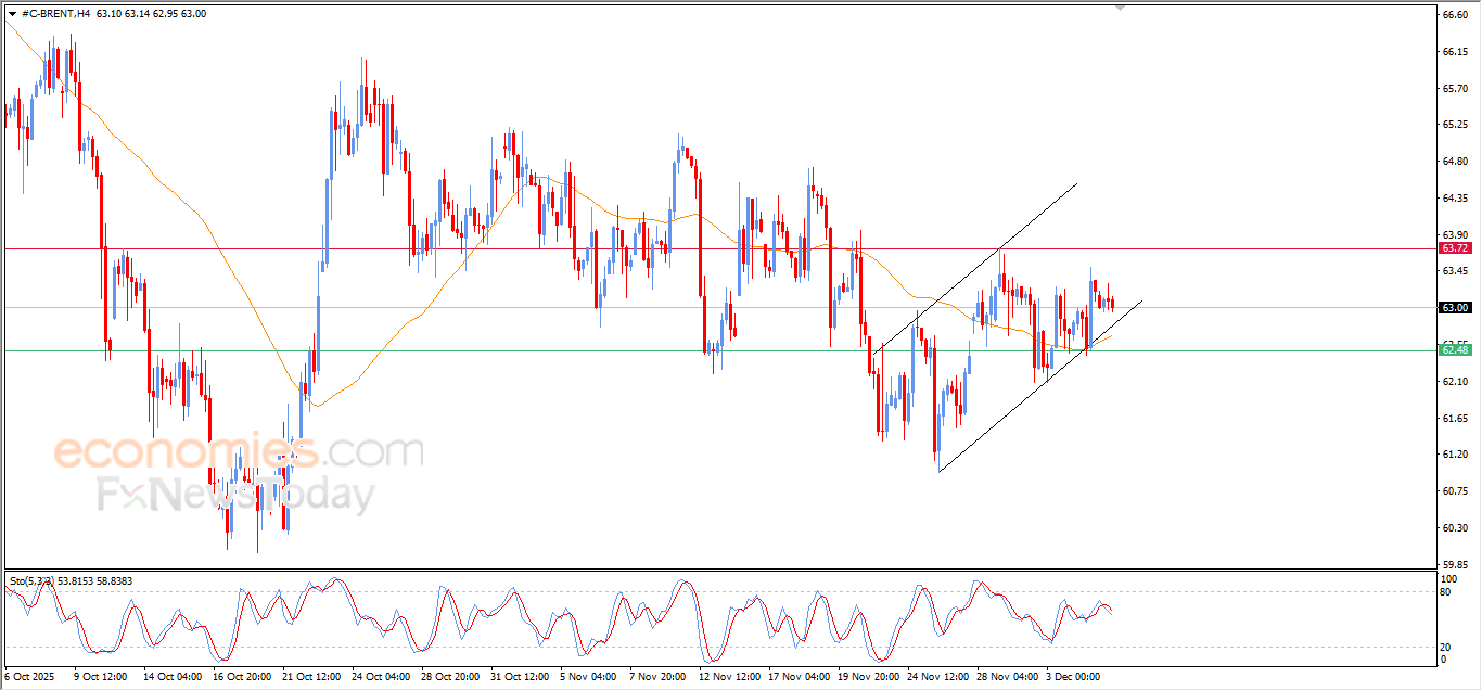 Brent crude oil’s price trading fluctuated on the intraday basis, amid its trading within minor bullish channel’s range that limited its trading on the short-term basis, taking advantage of the dynamic support that is represented by its trading above EMA50, to gain bullish momentum that might help it to recover and rise again, attempting to offload its overbought conditions on the relative strength indicators, especially with the emergence of the negative signals from there.