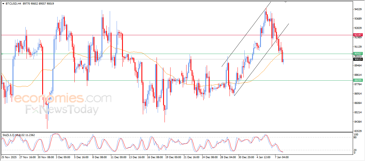BTCUSD’s price rose slightly with fluctuating trading on its recent intraday levels, in attempt to recover some previous losses, accompanied by its attempts to surpass the clear oversold conditions on the relative strength indicators, especially with the emergence of positive overlapping signals, affected by exiting minor bullish channel’s range on the short-term basis, affected by the negative pressure due to its trading below EMA50.
