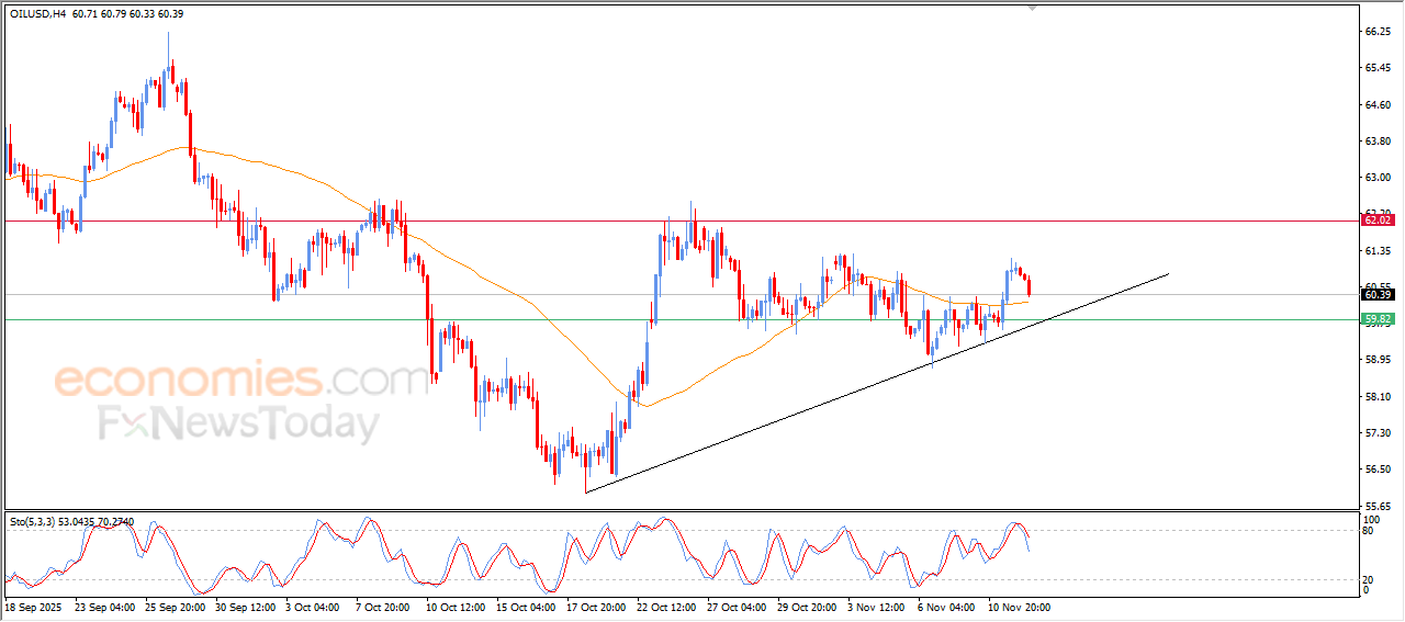 The price of (crude oil) declined in its last intraday trading, attempting to gain bullish momentum that may help it to recover and rise again, and attempts to offload some of its overbought conditions on the relative strength indicators, approaching from leaning on the support of its EMA50, amid the dominance of the main bullish corrective trend on the short-term basis and its trading alongside supportive trendline for this track.