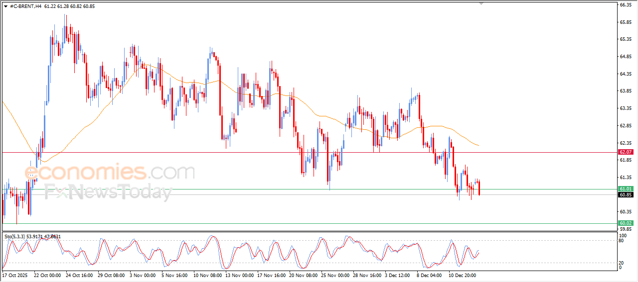 Brent crude oil’s price witnessed sharp decline in its recent trading on the intraday levels, keeping the main bearish trend dominant on the short-term basis, with the continuation of the negative pressure that comes from its trading below EMA50, reinforcing the negative pressure around the price, breaking the key support at $61.00, confirming its momentum to deepen its losses on the short-term basis.