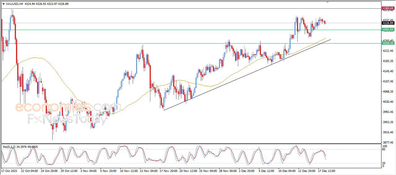 The price of (Gold) witnessed slight decline in its last intraday trading, amid the emergence of negative signals on relative strength indicators, after reaching overbought levels, attempting to gain bullish momentum that might turn it to its bullish trend, especially with its trading alongside minor bullish trend line on the short-term basis, and there is dynamic support that is represented by its trading above EMA50, reinforcing the chances of the price recovery on the near-term basis.
