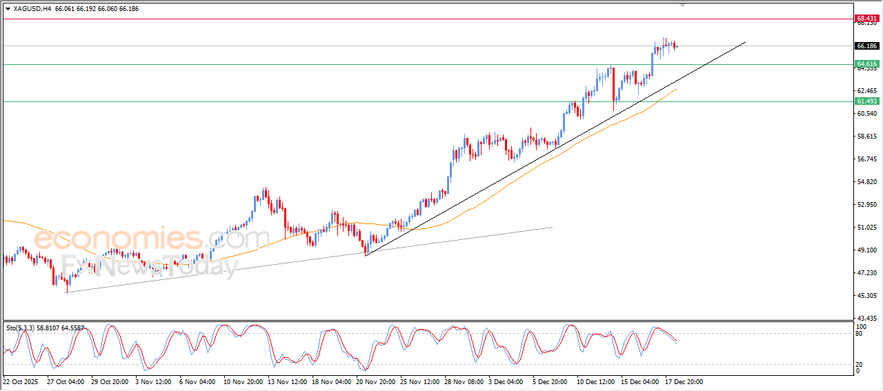 The price of (silver) continued its fluctuating performance on its last intraday levels, attempting to gather its bullish momentum that might help it achieve new all-time highs, besides offloading the overbought conditions on the relative strength indicators, especially with the emergence of the negative signals until this moment, amid the continuation of the positive pressure due to its trading above EMA50, reinforcing the dominance of the main bullish trend on the short-term basis, with its trading alongside trend line.