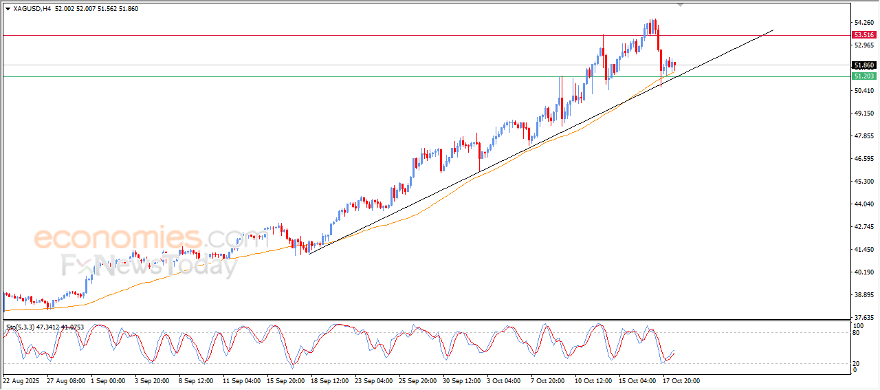 The price of (silver) declined in its last intraday levels, leaning on the support of its EMA50, amid its attempts to gain bullish momentum that might help it to recover and rise again, amid the dominance of the main bullish trend on the short- term basis and its trading alongside supportive trend line for this track, with the emergence of the positive signals on the relative strength on the relative strength indicators, after reaching oversold levels.