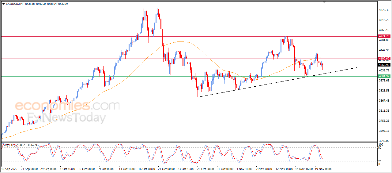 The price of (silver) declined in its last intraday trading, amid the emergence of negative signals on the relative strength indicators after reaching overbought levels, surpassing the support of its EMA50, which put it under negative pressure that obstructs the recovery attempts in the upcoming period, amid the dominance of the main bullish trend and its trading alongside supportive minor trend line for this trend.