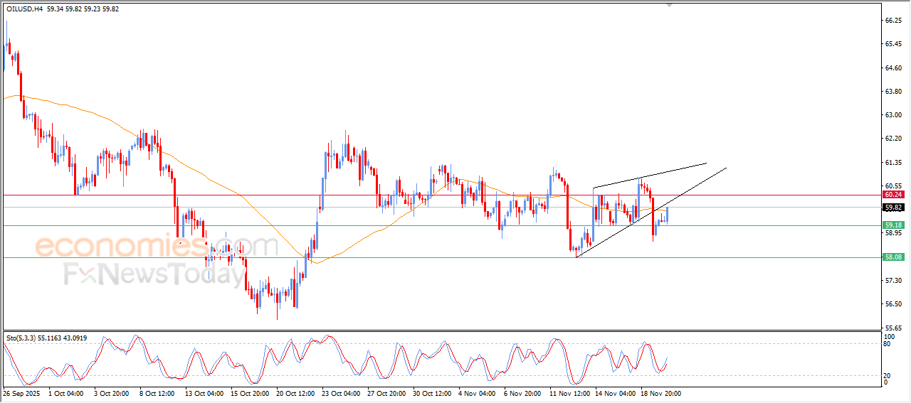 The price of (crude oil) rose in its last intraday trading, supported by the emergence of the positive signals on the relative strength indicators, after reaching oversold levels, hitting the resistance of its EMA50, affected by negative technical formation on a short- term basis (the rising wedge pattern), reducing the chances of recovery on the short-term basis.