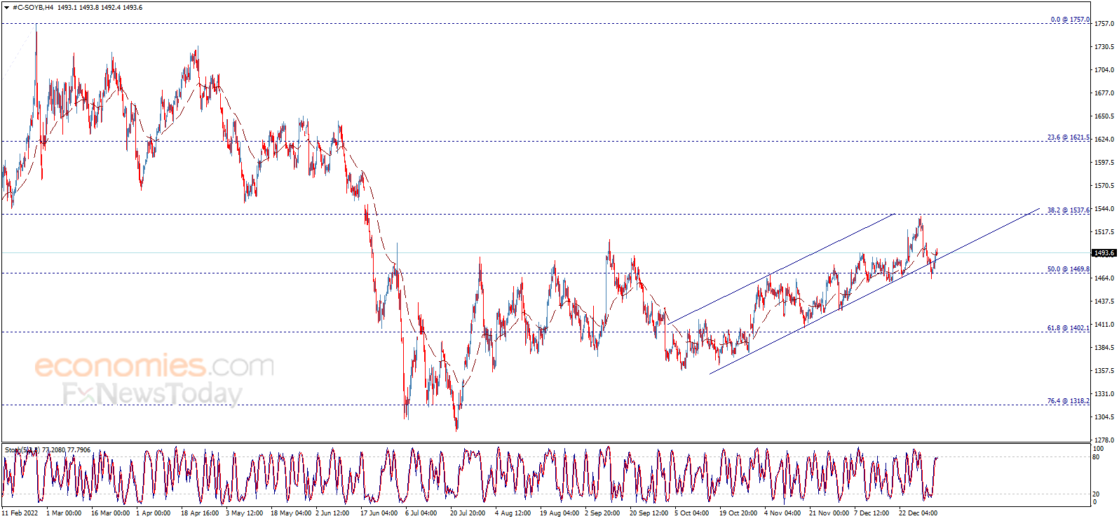 Wheat price fluctuates at the intraday bullish channel’s support line that appears on the chart, noticing that stochastic shows oversold signals now, waiting to motivate the price to resume the positive trades and heads towards 778.10 that represents our next main target.