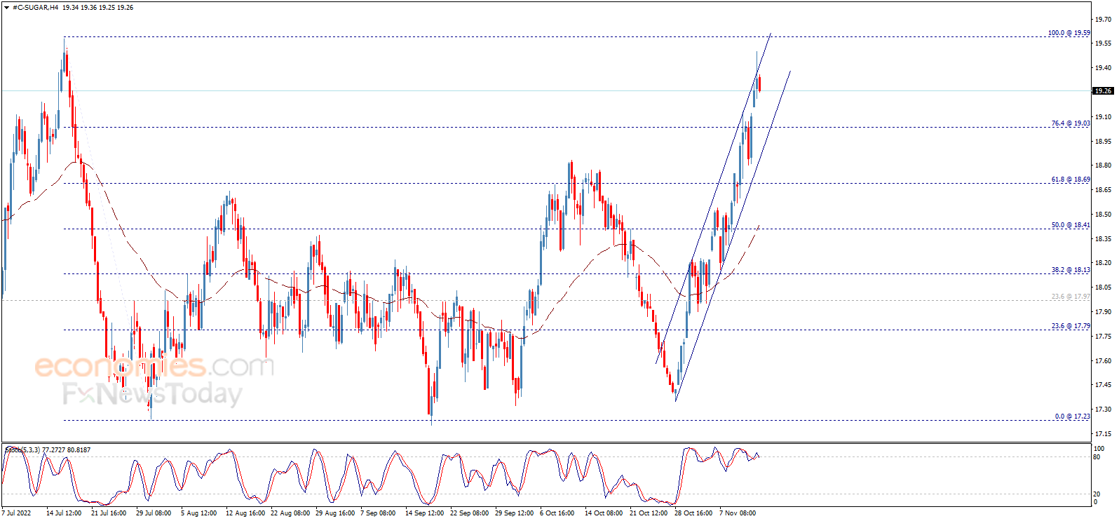 Sugar price provided new strong positive trades to surpass 19.00 level and approaches our new target at 19.60, reinforcing the expectations of continuing the bullish trend on the intraday and short term basis, noting that surpassing this level will push the price to 20.00 as a next positive target.