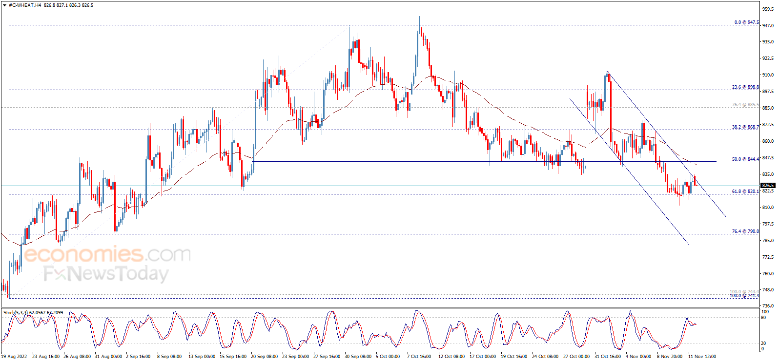 Wheat price attempted to break 820.10 but it faces solid support there, noticing that stochastic provides negative signals that we are waiting to motivate the price to break this level and confirm extending the bearish wave towards 790.00 areas.