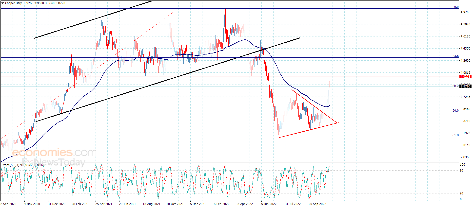 Copper price touched 3.9500 level this morning, to form an intraday rebound towards 38.2% Fibonacci correction level in order to catch its breath before resuming the main bullish attack, which might target 4.0500 level initially reaching 4.3000 in the medium period trading.