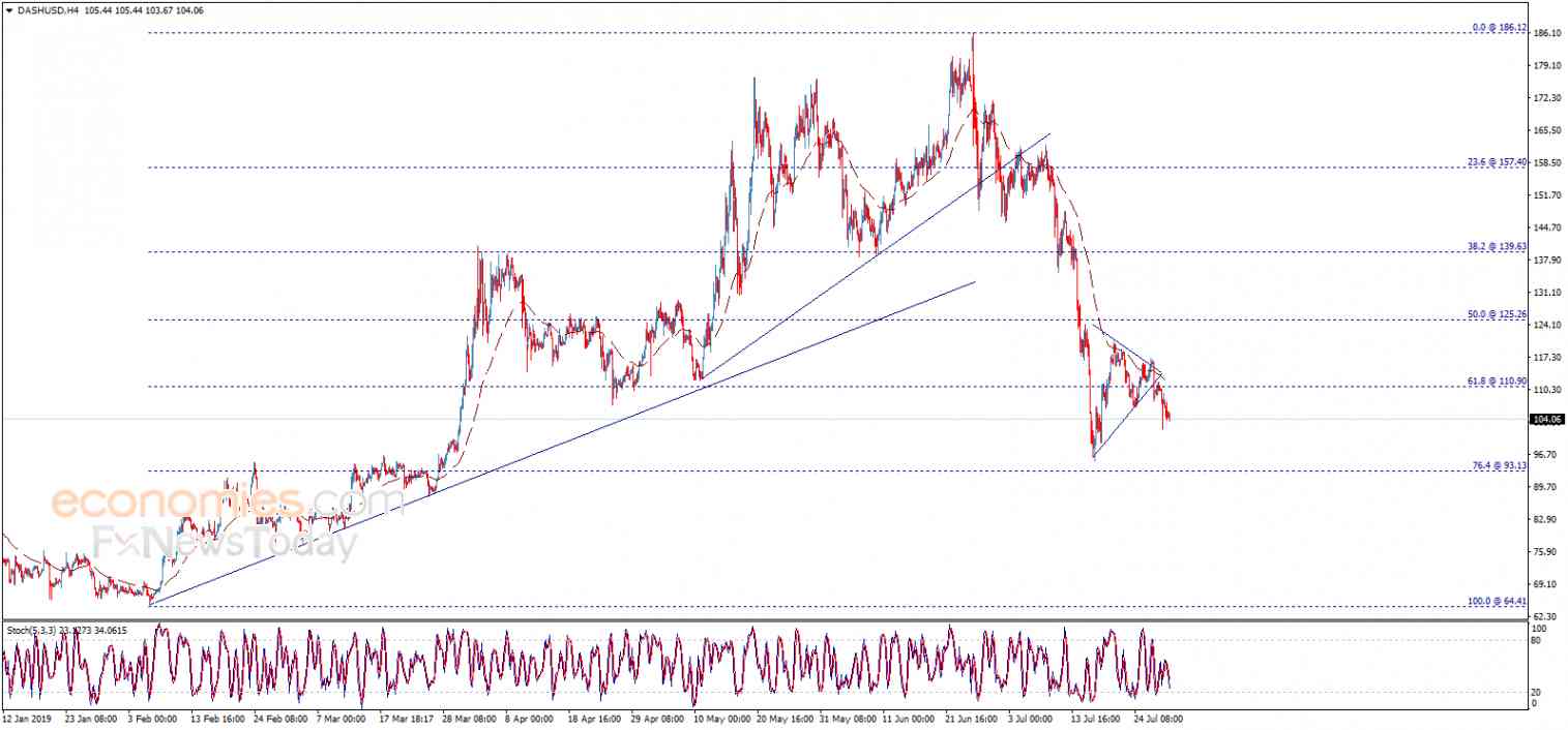 DashCoin price continues to decline calmly to approach 100.00$ barrier, to keep the bearish trend scenario valid and active in the upcoming sessions, supported by the negative pressure formed by the EMA50, which its next main target located at 93.13, while its continuation depends on the price stability below 110.90.