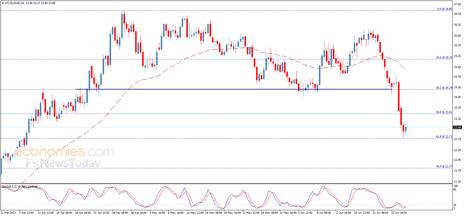 Sugar price surpassed 23.50 level to reach the waited target at 22.75, and we expect facing more negative pressure to break the last level and open the way to head towards 21.80 as a next negative station.