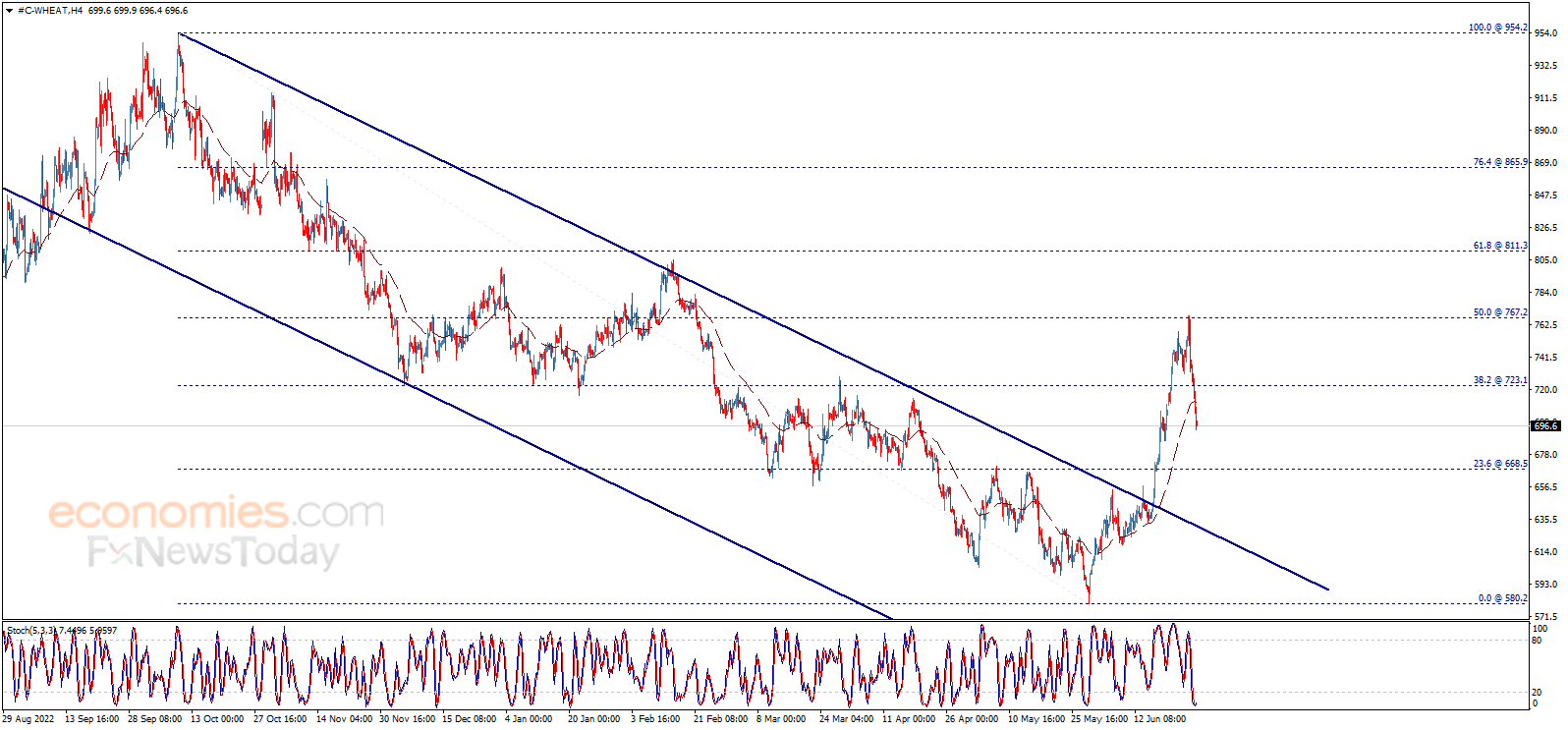 Wheat price traded with strong negativity to break 723.10 level and settles below 700.00$ barrier, which supports the continuation of the domination of the expected bearish trend on the intraday and short term basis, and the way is open to head towards our next negative target at 668.50.