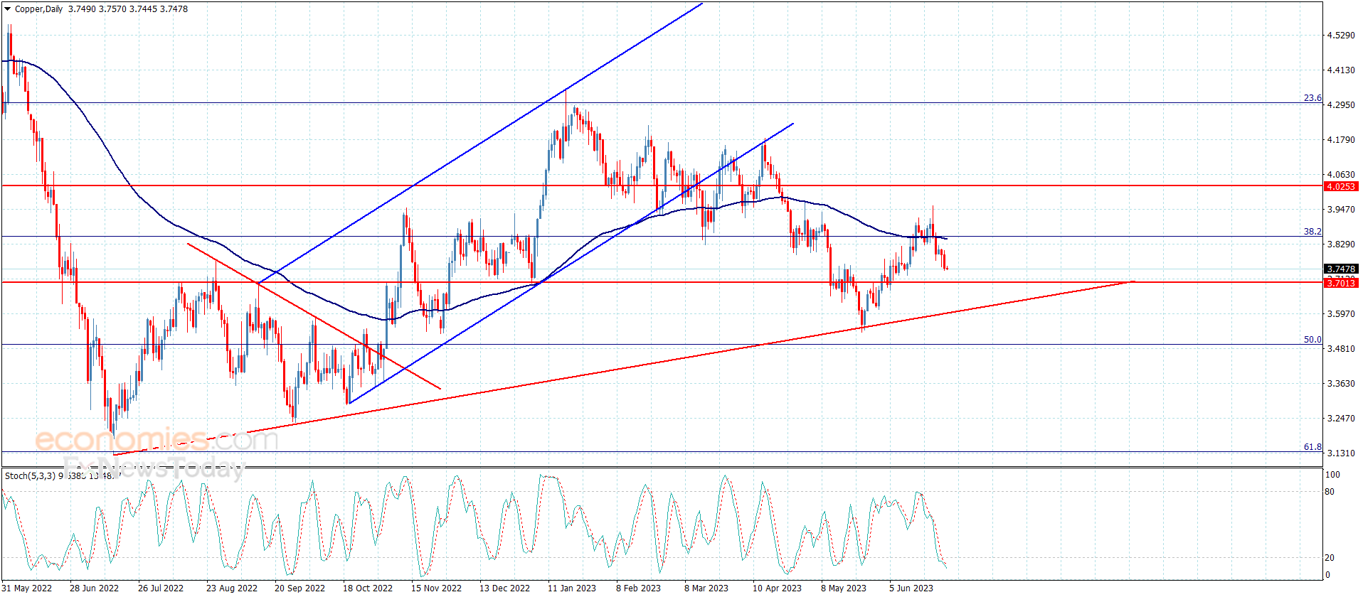 Copper price resumed providing slow negative trading, due to the contradiction between the main indicators against the stability of the price above the critical support at 3.6000, note that the stability of the trading below the moving average 55 at 3.8500 will increase the chances for renewing the negative attempts, to keep waiting for targeting the correctional stations, which are represented by 3.7000 level reaching the mentioned critical support.