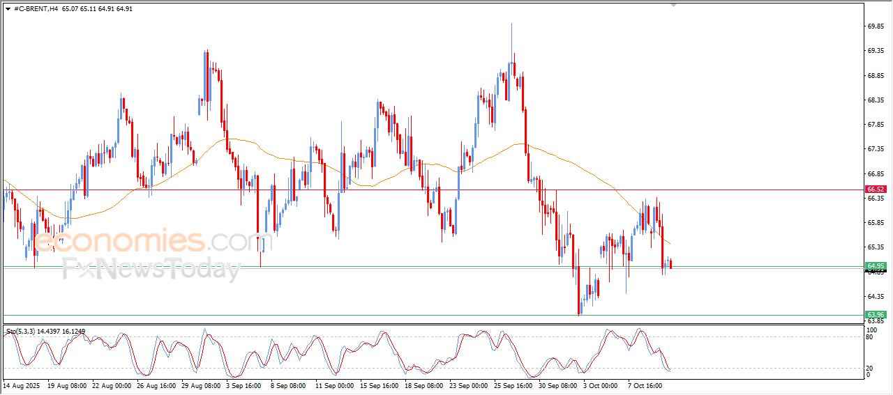 The (Brent) price declined in its last intraday trading, preparing to break the current support level at $64.95, amid the dominance of the main bearish trend on the short-term basis, with the continuation of the negative pressure due to its trading below EMA50, intensifying the negative pressure on the price, especially with the emergence of the negative signals on the relative strength indicators, despite reaching oversold levels.