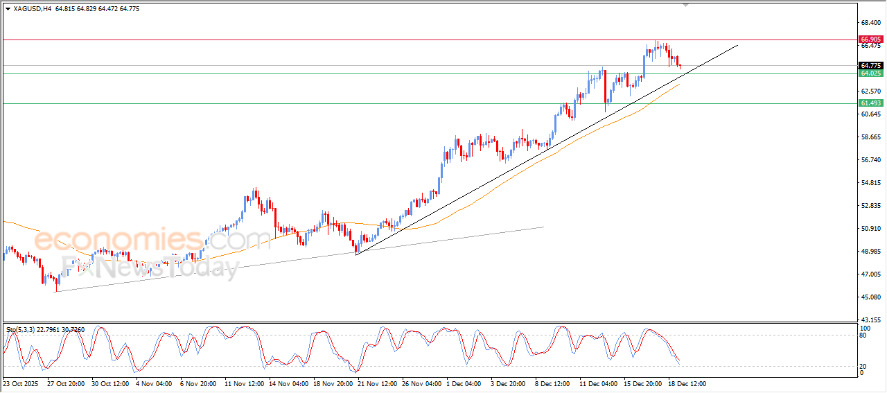 Silver price declined in its last intraday levels, attempting to look for a rising low to take it as a base to help it gain the required bullish momentum for its recovery, amid the dominance of the main bullish trend and its trading alongside supportive trend line for this track, with the continuation of the dynamic pressure that is represented by its trading above EMA50, reinforcing the chances of the recovery in the upcoming period, especially when reaching oversold levels by the relative strength indicators, indicating a quick decline in the bearish momentum.