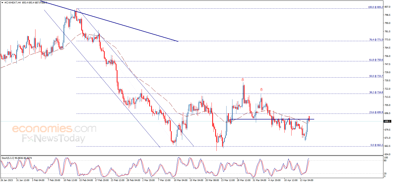 Wheat price traded with strong positivity in the previous sessions, to retest the broken neckline of the double top pattern that appears on the chart, noticing that the price begins today with bearish bias in attempt to move away from the current resistance, to keep the bearish trend scenario active for the upcoming period, supported by stochastic negativity.