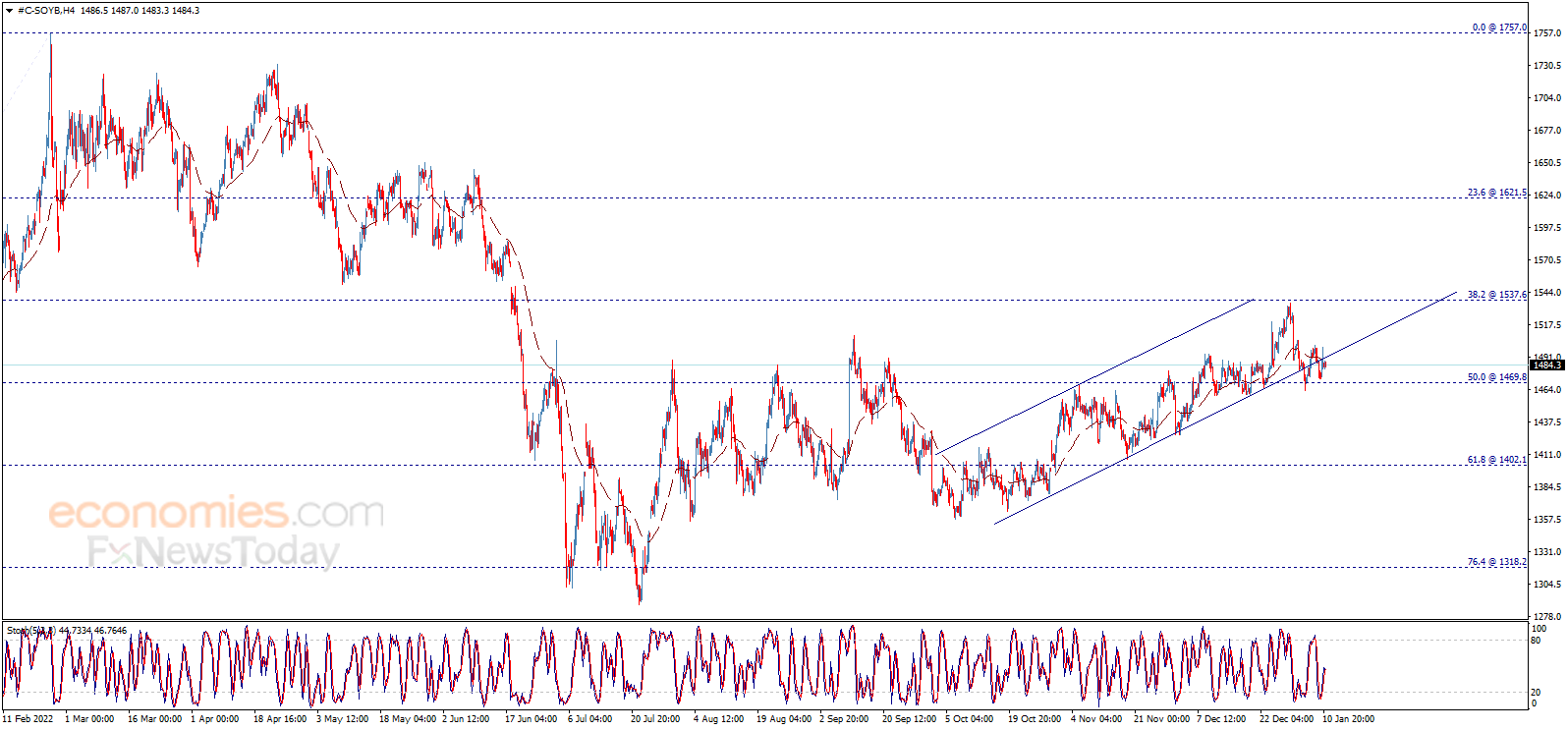 Soybean price tested the previously broken support of the bullish channel and kept its stability below it, to keep the bearish trend scenario valid and active, waiting to break 1470.00 to confirm rallying towards 1440.00 followed by 1402.10.