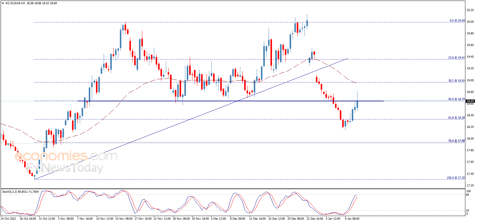 Sugar price traded with clear positivity yesterday to breach 18.40 and test the key resistance 18.70, noticing that the price kept its stability below the last level, which encourages us to suggest the bearish rebound to resume the bearish trend and achieve negative targets that start at 18.40 followed by 18.00.