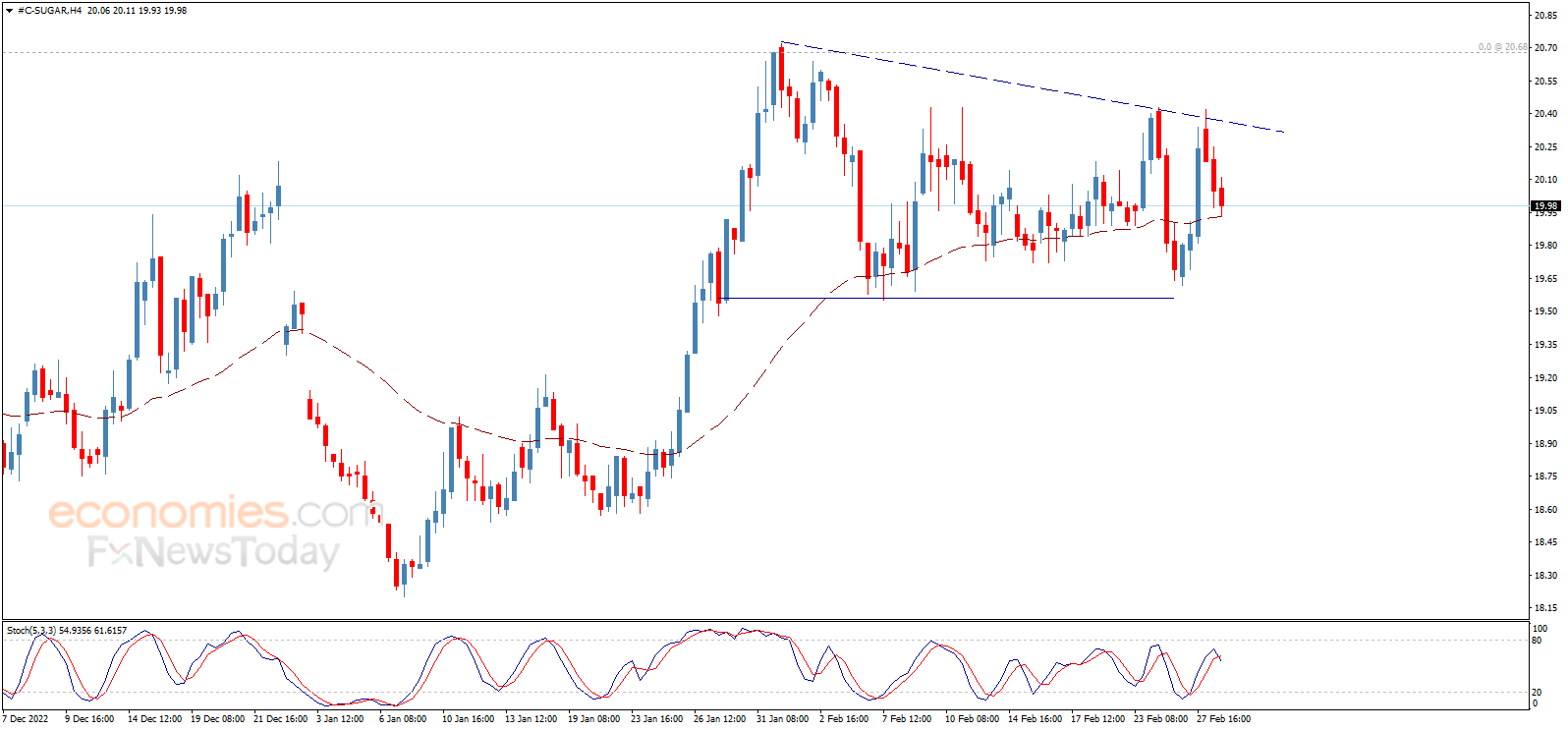 Sugar price bounced downwards clearly after testing the resistance line that appears on the chart, motivated by stochastic negativity, which supports the continuation of the expected bearish trend on the intraday basis, waiting to visit 19.55 level initially.